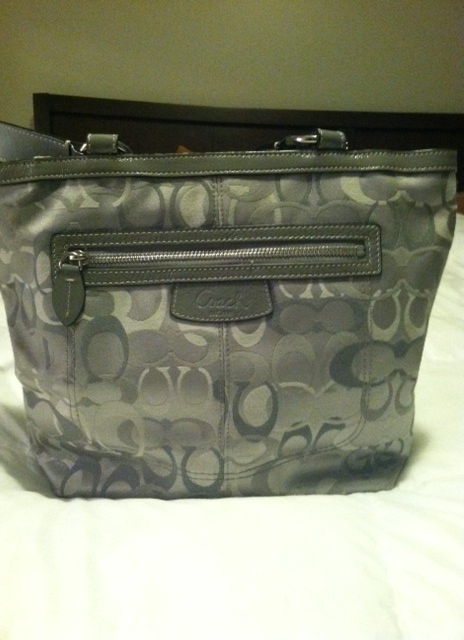 Nowadays, I love to buy purses. The odd thing about this fact is that I hardly ever carry a purse. Still, I can’t resist buying them. For instance, here’s a purse I bought from the Coach outlet near my house (yes, a Coach outlet near a handbag addict is dangerous– I try to stay away). The day I bought this I decided I couldn’t live without it. I loved it so much. I still do. The first time I used it even my husband noticed (I told him it cost “about eighty dollars,” which isn’t entirely false depending on how you define “about.” I prefer a looser, more fluid definition myself.).