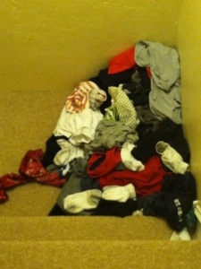 THE LAUNDRY MONSTER! You will NEVER escape me! Sure, you may contain me for a day or two, but I am ALWAYS here, lingering, waiting, building up every hour and ready to attack your weekend! Bwah ha ha ha ha!