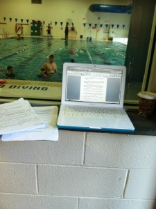 Swim class, editing, morning coffee, blogging. Hey, forty-five minutes is forty-five minutes. I take what I can get.