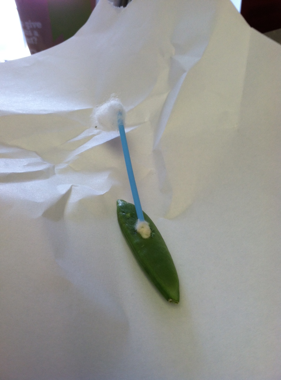 Historically, JC doesn’t like to try new foods because he’s sensitive to texture and smell. He hates the smell of his brother’s Cheerios and flees to the other room when they appear on the table. It takes a lot to get him to try anything. This is what he did with a raw snow pea I presented him, then lost track of:
