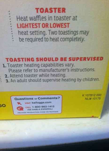 And speaking of fires, after I brilliantly installed the light switch, I almost DID set the house on fire. I dropped a waffle through the grate of the toaster oven onto the heating element. The waffle caught and started to FLAME, people! Orange flames, like bursting and crackling! In the house! Scared me to death.